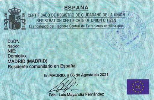 Nie number in spain